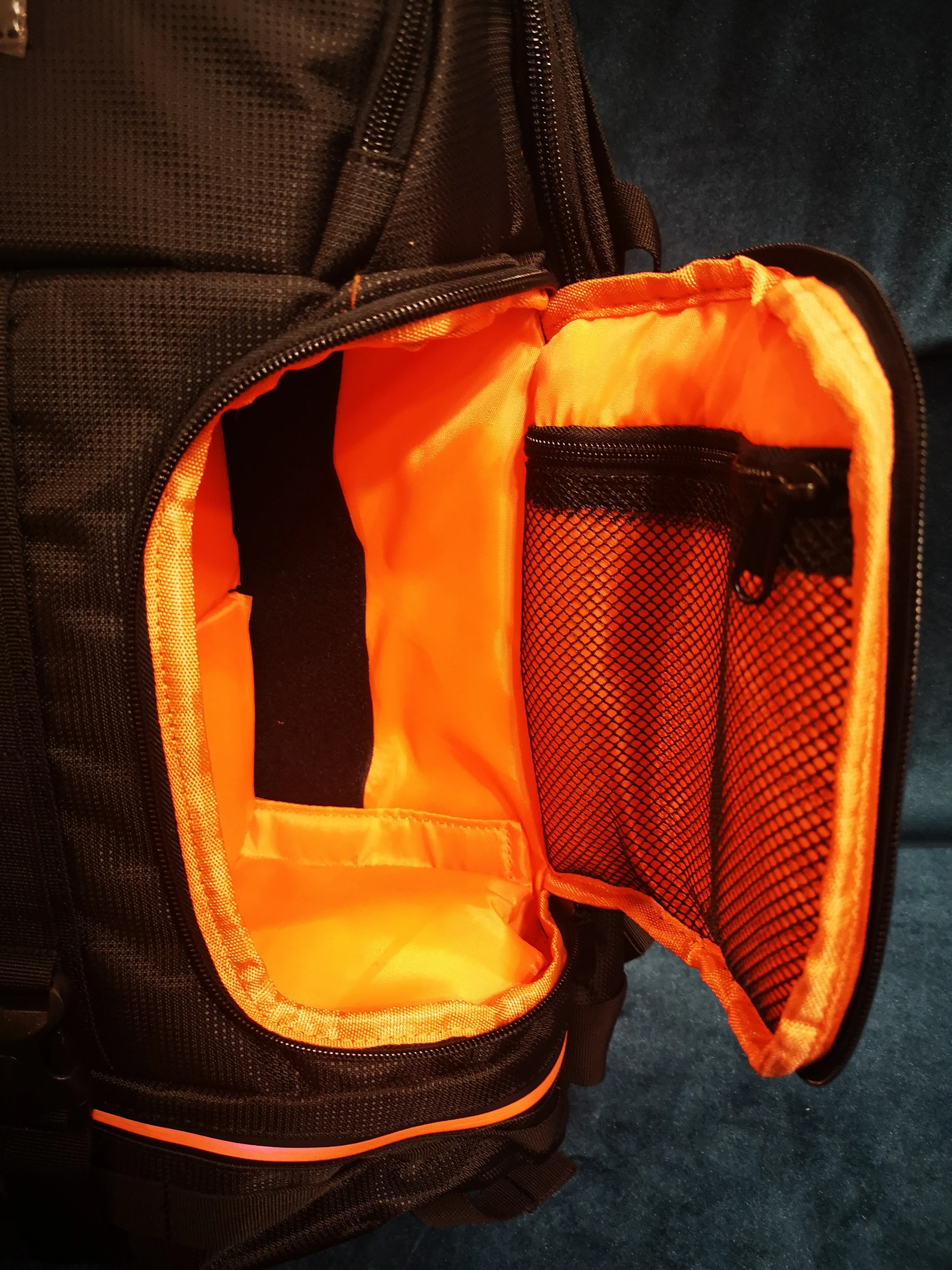 Клапан для быстрого доступа к технике расположен на боковых сторонах рюкзака и оснащён молнией.