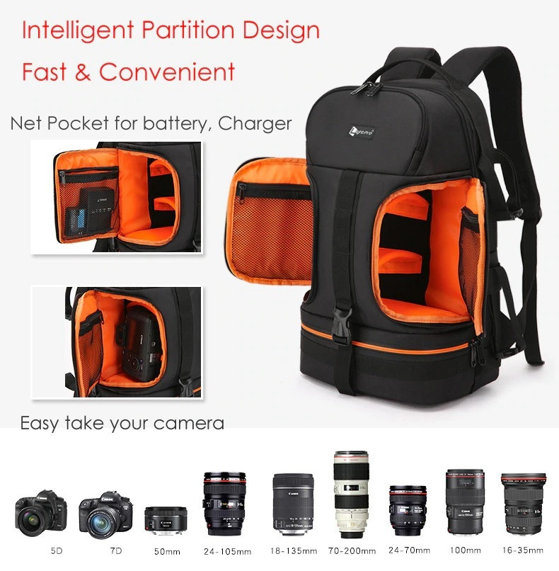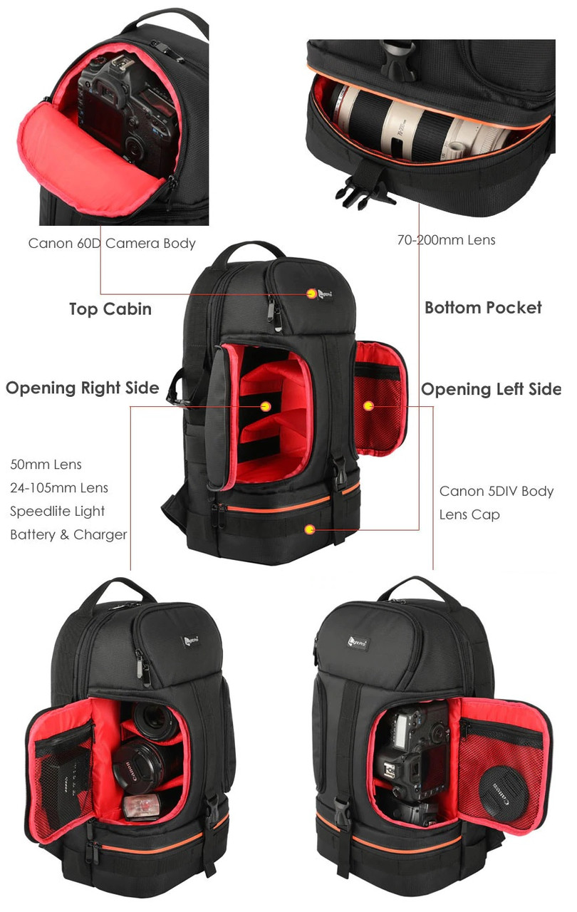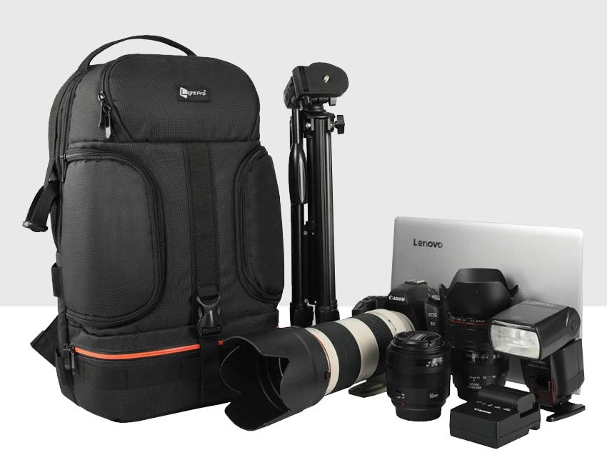 Очень легкий и вместительный рюкзак для фотоаппарата, вмещается фотоаппарат и 3-4 объектива (количество зависит от размера линз), вспышки,отделение для личных вещей и Ноутбука 15,6!