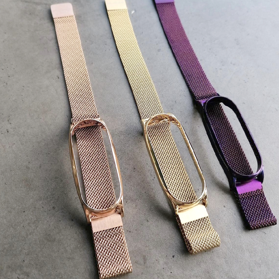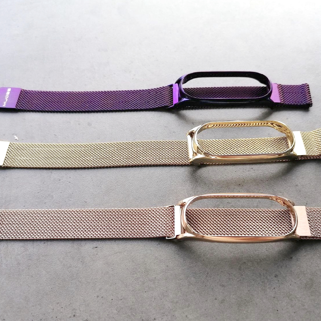 Магнитная застежка сделана из стали с матовым покрытием и обеспечивает очень легкое регулирование ремешка по запястью, а крепление, в которое помещается фитнес-браслет, — из отполированной стали.