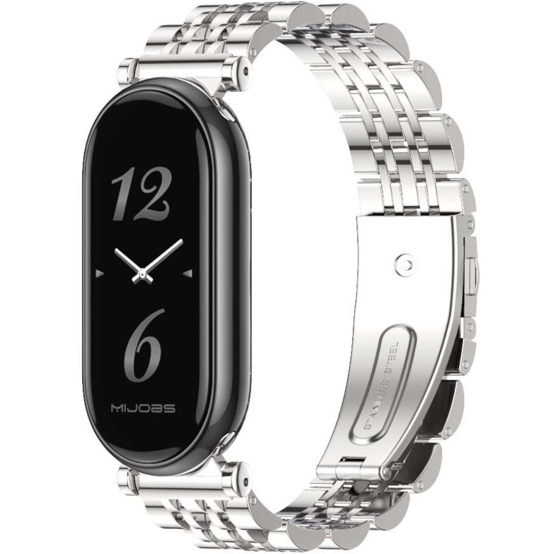 Металевий ремінець Mi Jobs Seven Pearls виконаний з нержавіючої сталі, надійно тримає капсулу Xiaomi Mi Band 8 та Xiaomi Mi Band 9 та має надійну застібку Butterfly. Витончений дизайн ремінця! Ремінець доповнить Ваш образ своїм стильним та сучасним дизайном, а також буде надійним та якісним аксесуаром для Вашого Mi Band.