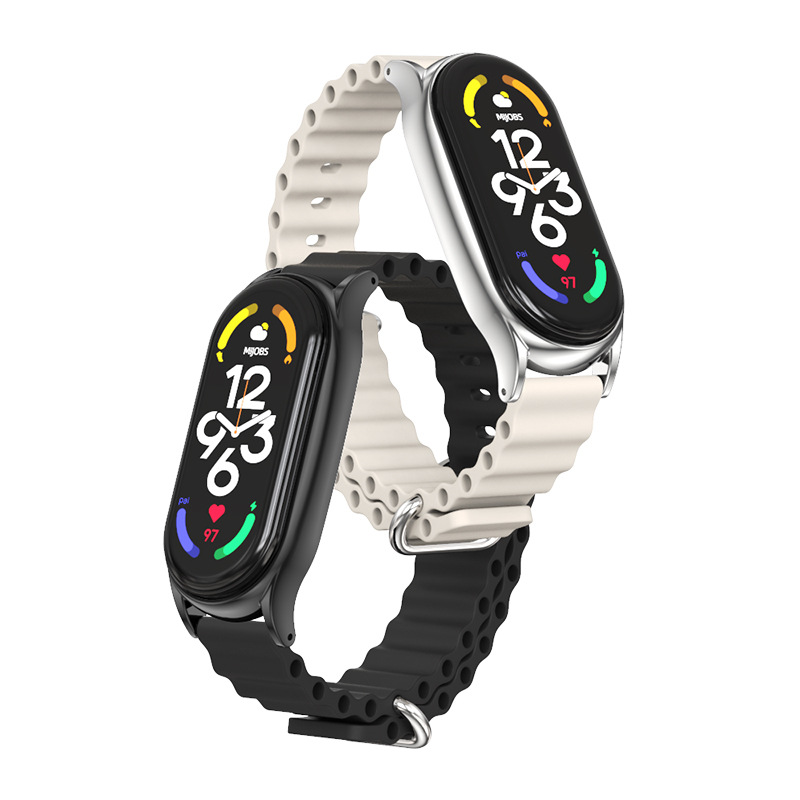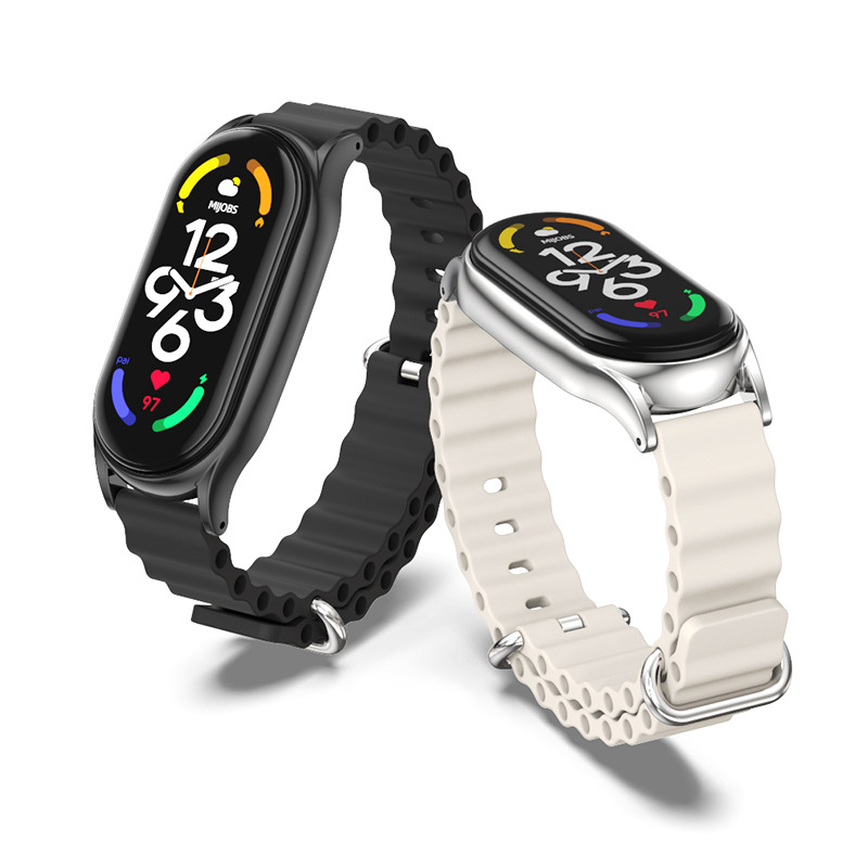 Качество от Mi Jobs: Модель выполнена из прочного и эластичного силикона, устойчивого к повреждениям и деформациям. Этот материал абсолютно безопасен для здоровья, не вызывая раздражения даже при продолжительном использовании. Металлическое крепление предназначено для надежной фиксации фитнес-браслета.