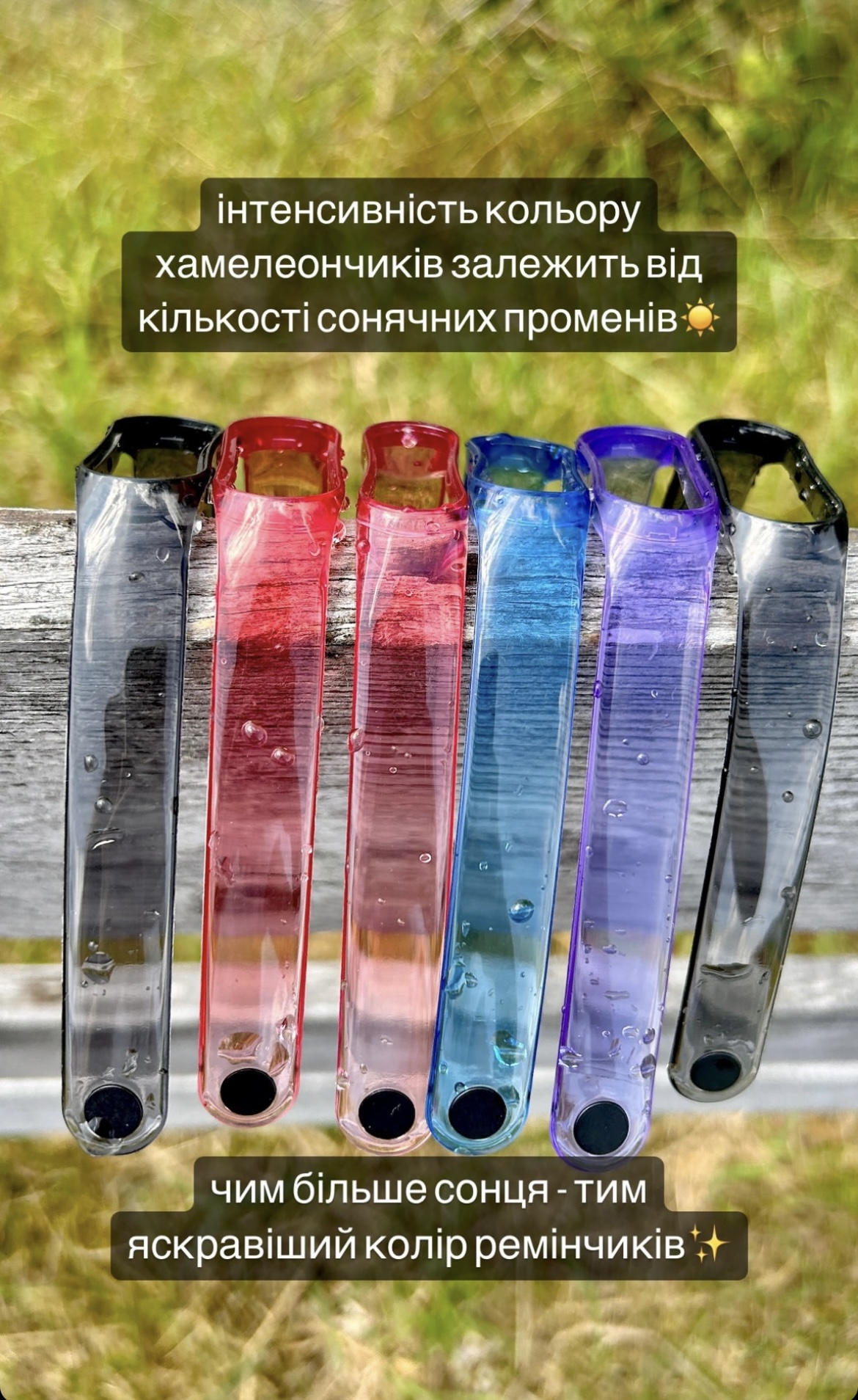 Внимание! В тени ремешок прозрачный без цвета, а на солнце становится такого цвета как на фото.