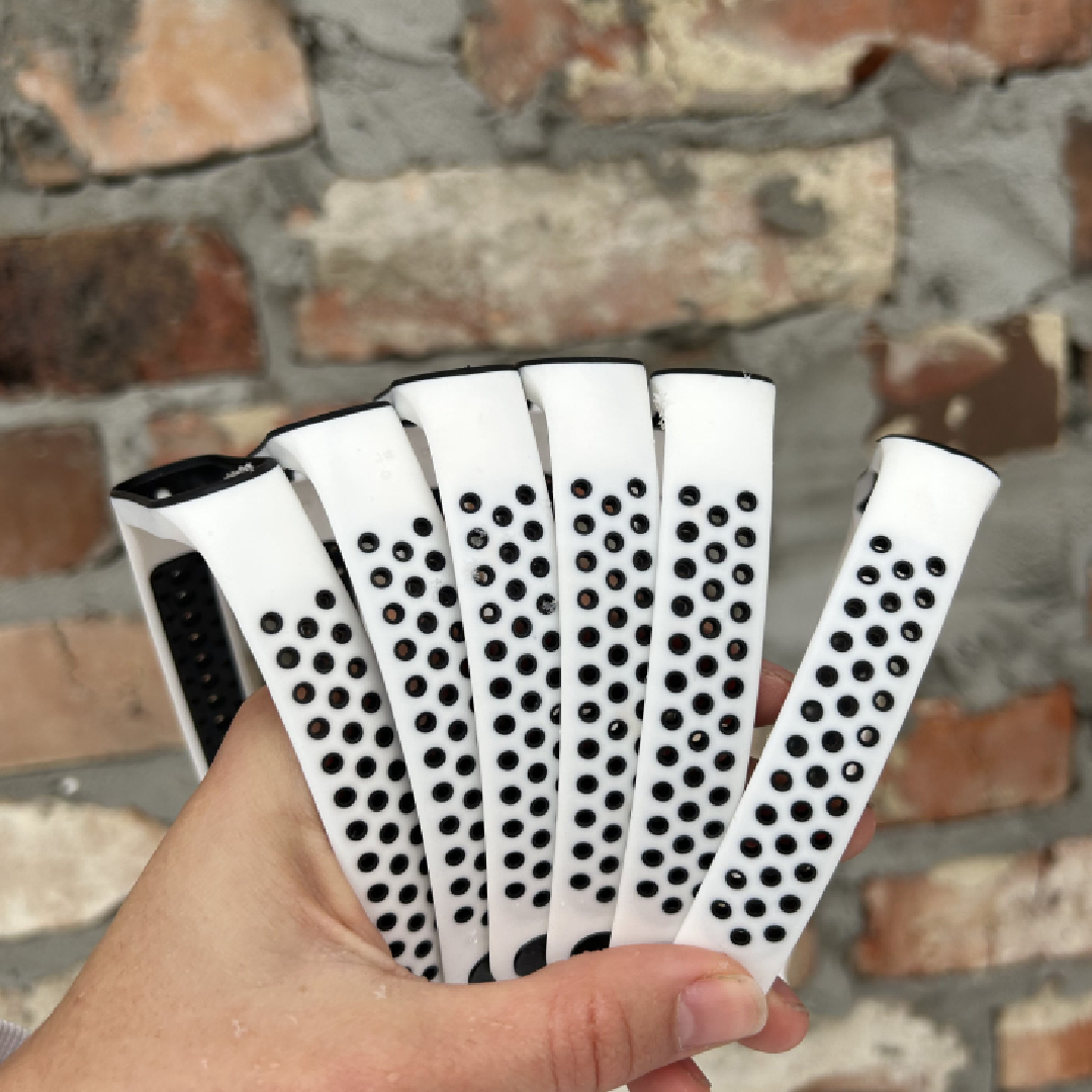 | UkrName | Ремінець Nike style для фітнес-браслета Xiaomi Mi Band 7/6/5 Білий з чорним + металева кнопка |