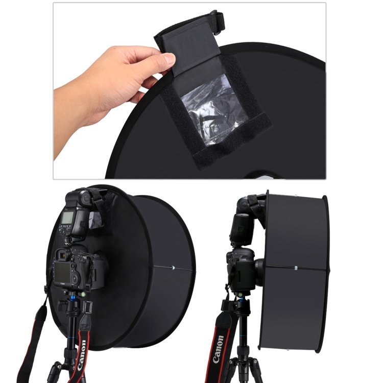 Круговий складний софтбокс Puluz PU5145 використовується для створення експозицій рівномірної густини по всій поверхні знімка. Матеріал, що використовується в софтбоксі, ефективно розсіює світло на об’єкті, запобігаючи різким тіням. За допомогою гумки можна легко встановити або прибрати його. Компактний софтбокс легко складається, тому ви можете брати його з собою будь-куди і коли завгодно. Пом’якшіть світловий потік та приберіть тінь для ідеальної зйомки. Характеристики: